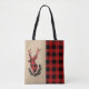 Dieser markante Totbeutel mit einem karierten Hirschkopf aus rotem und schwarzem Büffel, der vor einem warmen, braunen Hintergrund hervorgehoben dargestellt wird, simuliert Kraft Papier, das es zu einem idealen Accessoire für die Ferienzeit macht. Dieses rustikale Design besticht durch seinen Weihnachtscharme und verbindet die Praxisnähe mit dem saisonalen Stil. Genießen Sie die Urlaubsstimmung mit dieser einzigartigen und auffälligen Tasche, die sich ideal für die Begrüßung von Geschenken oder persönlichen Gegenständen während Ihrer festlichen Ausflüge eignet.