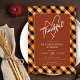 Dieses moderne Erntedank lädt Sie mit einem karierten Herbstbüffel ein. Das Sprichwort "Dankbar" in stilvollem Ambiente. Es ist der perfekte Weg, um Ihre Familie und Freunde einzuladen, um den Urlaub mit Ihnen zu feiern.