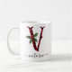 Schwarz und Rot Buffalo Kariert V Monogram Xmas Kaffee Tasse mit einem niedlichen A Anfangsbuchstaben mit einem Büffel karierten Muster und mistletoe Aquarellelement. Die individuelle Name-Vorlage unter dem V-Monogramm befindet sich in einem Wirblen handgeschriebenen Kalligraphie-Schriftart mit Schnörkeln. Gönnen Sie sich eine durchdachte personalisierte Weihnachtsfeier als Winterurlaubsgeschenk oder kleine Geschenk. Für einen anderen Karo in Monogrammbriefen im Abschnitt "Andere Produkte aus dieser Sammlung" unten.