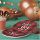 Auf der Papierplatte des Holiday steht ein roter Büffel-Karo kariert mit der Schreibschrift "baby it's kold outine", die eine weiße Pinselspitze trägt. Eine trendige Ergänzung zu Ihrer Feier.