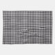 This kitchen towel is shown in a cute black and white buffalo plaid print design.