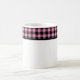 This ceramic coffee mug is shown with a lovely black and pink color buffalo plaid.