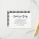 Dieses Büffel kariert bringt eine Babyduschekarte, die sich perfekt für Ihre geschlechtsneutrale Babydusche eignet. Versenden Sie diese niedlichen Spielkarten mit der Babydusche, um die Gäste zum Aufbau der Babybibliothek fragen. Ihre Gäste können eine Nachricht für das Baby im Buch schreiben, anstatt in einer Karte. Was für eine niedliche Art für die Eltern und das neue Baby, sich an die Duschgäste zu erinnern! Das schlichte und rustikale Design ist mit schwarz-weißem Büffel-Karo hinten und schwarzem Skript-Schriftart ausgestattet.