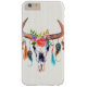 Wasserfarbener Büffel-Schädel mit Feder und Blume über weißes Stammesmuster