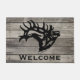 Personalisieren Sie diese einzigartige "One of a Kind" Bull Elk Door Mat! Es verfügt über eine majestätische Bugling Bull Elk Black Silhouette...auf einem grauen Holzhintergrund!