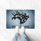 Personalisieren Sie diese einzigartige "One of a Kind" Bull Elk Door Mat! Es verfügt über eine majestätische Bugling Bull Elk Black Silhouette...auf einem Slate Blue Background!