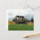 Diese Postkarte zeigt die Kürbise an, die um Heuballen mit einer Replik eines Bühnezuges vom alten Westen vorstehend geparkt in der Mitte sitzen. Vervollkommnen Sie für jene kurzen Anmerkungen oder Mitteilungen im Fall zu den Freunden und zur Familie.