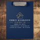 Designed for builders, contractors, and home service professionals, this durable clipboard features a sleek navy background accented with gold details for a strong, trustworthy look. Customize with your business name or logo to create a professional on-site accessory that keeps plans, estimates, and notes secure while reinforcing your brand image.
