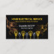 Overleaf, ein ähnliches Design-Thema wird mit blauen Blitzen verwendet. Oben befindet sich ein Imitat Gold Zuhause und Glühbirnen Logo, das Sie verwenden können, gefolgt von Ihrem Prestigenamen, Kontaktdaten und einem Slogan Option, um Ihre Dienstleistungen zu veröffentlichen.