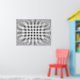Schwarze Punkte auf weißem Hintergrund, Op Art Print. Die Änderung der Größe und Form der Kreise verleiht dem von der Mitte ausgehenden Druck das Aussehen.