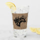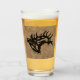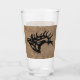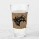 Brighten Sie Ihre Bar mit diesem einzigartigen Bull-Elk-Bierglas "Eine Art" auf! Es verfügt über eine Bugling Bull Elk Black Silhouette auf einem braunen Lederhintergrund. Original Design von Künstler Kerry Miller.