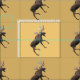Ein digitales Gemälde eines Bullenmoose (Alces alces), das auf einem Buckhaut-Hintergrund überlagert wird.