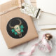 Bull Sugar Skull mit Aquamarinen Rose auf schwarz Runder Aufkleber