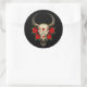 Bull Sugar Skull mit Rote Rosen auf schwarz Runder Aufkleber