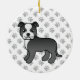 Desteis originelle Cartoon Illustration einer niedlichen Schwarz-Weiß-Farbe Englisch Staffordshire Bull Terrier / Staffie Rasse Hund. Der Hintergrund weist ein Muster grauer Hundepfoten auf.