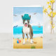 Ein Bull Terrier Hund sitzt am Strand und ist eine Geschenkidee für jemanden, der diesen Hund züchtet, der Liebe hat.
