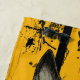 Detailed bull terrier in bold black and yellow contrast with urban grunge style and skull element. Strong dog artwork for fans of rock vibes, tattoo aesthetics and edgy street art.
