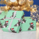Bull Terrier trägt eine Weihnachtsmannmütze Geschenkpapier