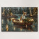 Set segelt mit dieser sehr detaillierten Abbildung in den Zauber der Urlaubssaison und zeigt einen stolzen Hund, der in einem festlich dekorierten Boot sitzt und über einen ruhigen Weihnachtssee gleitet. Die Lichter der nahen Kiefernbäume reflektieren das Wasser und warmen, festlichen Glanz, der das gemütliche Ambiente verstärkt. Die Ornamente versetzen sich von den Seiten des Bootes, während die Laternen leuchten und eine Szene schaffen, die das wahre Wesen der Weihnachtswärme und -freude einfängt. Dieses nostalgische Kunstwerk bringt eine Touch von Urlaubsmagie in jeden Raum, perfekt für diejenigen, die den Geist der Saison schätzen.