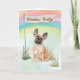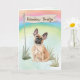 Ein gut aussehender französischer Bulldog sitzt unter dem Regenbogen auf der Vorderseite dieser Karte. Dieses hier wird das Beste sein, was man jemandem geben kann, der vor kurzem einen Haustier verloren hat. Bringen Sie der Person mit dieser Karte Komfort. Bestellen Sie jetzt eine Kopie davon!