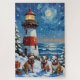 Bring loyal, wrinkled charm to your holiday season with this adorable Bulldog Christmas design! This magical scene features three stout, affectionate Bulldogs sitting patiently at the base of a tall red-and-white lighthouse, which stands majestically on a snowy coastal cliff. The lighthouse is beautifully adorned with glowing Christmas lights and fragrant garlands. The dogs wear festive Santa hats and cozy scarves, surrounded by colorful wrapped gifts and cheerful holly branches. The ocean waves sparkle in the moonlight while soft snowflakes drift gently in the air, creating a truly magical winter holiday atmosphere. This design is a perfect Christmas gift for any Bulldog owner, dog lover, or admirer of festive and beloved non-sporting dog art, capturing the serene joy of the season.