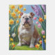 Ein fröhlicher Hund sitzt friedlich auf üppig grünem Gras, umgeben von bunten Frühlingsblüten unter einem weichen blauen Himmel. Dieses digitale Ölgemälde erfasst einen ruhigen Moment mit ausdrucksvollen Pinselstrichen, warmen Farben und einem Gefühl sanfter Freude.
