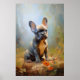 Französisches Bulldoggrab-Welpensonnenportrait im Garten