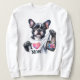 Fügen Sie Ihrem Kleiderschrank eine Touch Spaß und Persönlichkeit mit unserem französischen Bulldog Tattoo TShirt hinzu. Ideal für Hundefreunde, die ein bisschen Spaß und Charme schätzen.: Eine spielerische Illustration eines französischen Bulldoggen, der einen T - Shirt trägt, den Ärmel hochhält, um ein Tattoo zu enthüllen, in dem steht: "Ich ❤️ Mama." Der Ausdruck und die Pose des Bulldoggen vermitteln ein Gefühl von Stolz und Zuneigung und machen dieses Design zu einem ansprechenden und amüsanten zugleich.