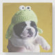 Französischer Bulldog Welpe mit Frosch Crochet Hut.