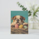 Feiern Sie Ostern mit dem bezaubernden und ikonischen Bulldog in dieser Vintagen Postkarte. Mit seinem lieblichen Hund umgeben von bunten Ostereiern, blühenden Frühlingsblumen und festlichen saisonalen Akzenten ist dieses Design perfekt für Bulldoggen Liebhaber, Sammler und Fans nostalgischer Urlaubskunst.