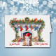 Die Vorderseite dieser Weihnachtsgrüßkarte zeigt einen bezaubernden braunen und weißen Bulldoggen mit einer rot-weißen Weihnachtsmannmütze. Der Hund sitzt vor einem dekorierten Kamin, der erwartungsgemäß für den Weihnachtsmann gewartet ist. Im roten Text unten steht "Gewartet für den Weihnachtsmann". Der Text ist anpassbar, wie auch der gesamte Insider-Text, sodass Sie ihn sagen lassen können, was Sie wollen. Niedlich! Sehen Sie mehr Bulldog-Bilder, zusammen mit Dutzenden anderer Hundezuchtprodukte, im Dog Village.