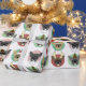 Weihnachts-Bulldoggen-Welpen, die Bullhunde in festlicher Kleidung und Pastellkreise zeigen. Wählen Sie die Hintergrundfarbe aus.
