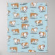 Ein niedliches Muster englischer Bullhunde. Dieser niedliche Cartoon britischer Bullhunde ist auf blauem Hintergrund mit Hundeknochen. Die Bullenhunde haben niedliche Ausdrücke auf ihren charakteristischen, zerknitterten Gesichtern. Ein Muster für jeden, der Hunde Liebe.