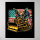 Bulldozer American Flag Halloween Skull Poster