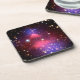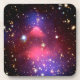 Dieses zusammengesetzte Bild zeigt den Galaxienhaufen 1E 0657-556, auch bekannt als "Kugeln-Cluster". Dieser Cluster entstand nach der Kollision zweier großer Galaxiehaufen, dem energetischsten Ereignis, das im Universum seit dem Urknall bekannt ist. Das heiße Gas, das Chandra bei Röntgenaufnahmen entdeckt hat, wird als zwei rosa Klümpchen im Bild angesehen und enthält den Großteil der "normalen" oder baryonischen Materie in den beiden Clustern. Der kugelförmige Klumpen rechts ist das heiße Gas eines Clusters, das während der Kollision durch das heiße Gas des anderen größeren Clusters geleitet wurde.