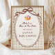 Celebrate the mom to be with this Bun in the Oven Gingham Bakery Baby Shower Welcome Poster. Designed with a watercolor cinnamon roll, vintage chocolate bow frame, and a soft beige gingham background, this cozy bakery inspired design adds sweet charm to your celebration. Perfect for a gender neutral baby shower or baby sprinkle, this editable welcome sign creates a warm and inviting first impression for your guests.
