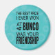Moderner typografischer Stil Text für Ihren Bunco besten Freund. Bunco Würfel Stimmung lautet: Der beste Preis, den ich je bei Bunco gewonnen habe, war deine Freundschaft. Modularer Hintergrund für die Blume mit schwarzem Text. Perfektes Geschenk als Bunco-Preis.
