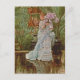 Viktorianische Frau in fließendem Lavendelkleid mit einem Lilakfüßchen. Das Ambiente ist in einem Wintergarten. Schöne Kunst des französischen Malers James Tissot.