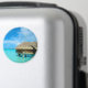 Aimant photo souvenir rond avec un bungalow lune de miel sur l'eau dans un resort de luxe dans le lagon bleu clair de l'île pacifique de Bora Bora, près de Tahiti dans l'archipel de Polynésie française.