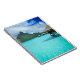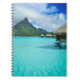 Carnet avec une station de vacances de pavillon d'overwater de lune de miel dans la lagune de bleu de turquoise de l'île du Pacifique de Bora Bora, près du Tahiti en français la Polynésie française.