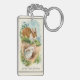 Deux adorables lapins jouent à cache-cache et cherchent dehors. Un lapin est brun et blanc et l'autre est blanc clair. Message : Aimer les voeux de Pâques. Image d'une carte postale Vintage de Pâques avec une bordure beige en dentelle.