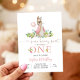 Celebrate your little ones special milestone with this whimsical bunny first birthday invitation. Featuring a sweet watercolor bunny in a pink jacket and floral crown holding a balloon, this pastel design is perfect for a girls birthday party. The charming woodland theme adds a magical touch, making it ideal for spring or summer celebrations. Personalize with your party details to create a keepsake guests will adore.
