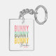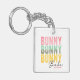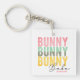 Bunny Babe Cute Modern Girly Pâques Porte - clé personnalisée dispose du texte moderne "Bunny Bunny Bunny Babe" en typographie rose, turquoise et jaune et personnalisée avec votre nom en éditant le texte dans la zone de texte fournie. Conçu par Evco Holidays www.zazzle.com/store/evcoholidays