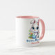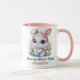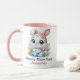 Bezaubernder zeichn eines weißen Hasen mit großen blauen Augen, der ein blaues Osterei trägt. Die Meldung "Bunny Blue Egg" wird in einer passenden blauen Schrift unter dem Bild geschrieben, und [NAME HIER] ist in passendem Rosa darunter geschrieben. Sie können entweder oder beide Nachrichten anpassen, um Ihren Geschmack zu Anzug. Erhältlich in verschiedenen Cup-Größen und Stilen. Sie können auch den Griff und/oder die Farbe in der Tasse ändern.
