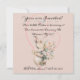 Niedlicher Hase mit einem Strauß. Einladung zu einem Party / Die Hintergrundfarbe ist individuell einstellbar, ebenso wie die Textvorder- und -rückseite.