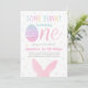 Un design sucré parfait pour une fête d'anniversaire de printemps! Conçu pour un 1er anniversaire, personnalisez le texte modifiable. Il présente une silhouette lapin, un oeuf de pâques, des couleurs pascales et un One gras. Le rose est la couleur principale et a le pois.