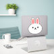 Niedlicher, weißer Cartoon Hasen Kopf mit großen rosa Ohren und einem hübschen Gesicht.
