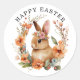 Bunny Rabbit Floral Wreath Oster Classic Round Sticker. Ideal für Umschlag Aufkleber oder Geschenkverpackungen. Frohe Ostern!
