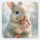 Bunny Rabbit Nibbling On a Candy Cane Quadratischer Aufkleber