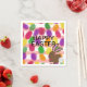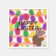 Fun pastellrosa und weiße Streifen mit bunten Ostereiern in rosa, lila, gelb, orange, grün. Festliche Papierservietten mit niedlichem Hasen mit großen rosafarbenen Ohren und weißem Cottontail mit der Formulierung Happy Oaster in schwarzem Text. Originaldesigns © TamiraZDesign